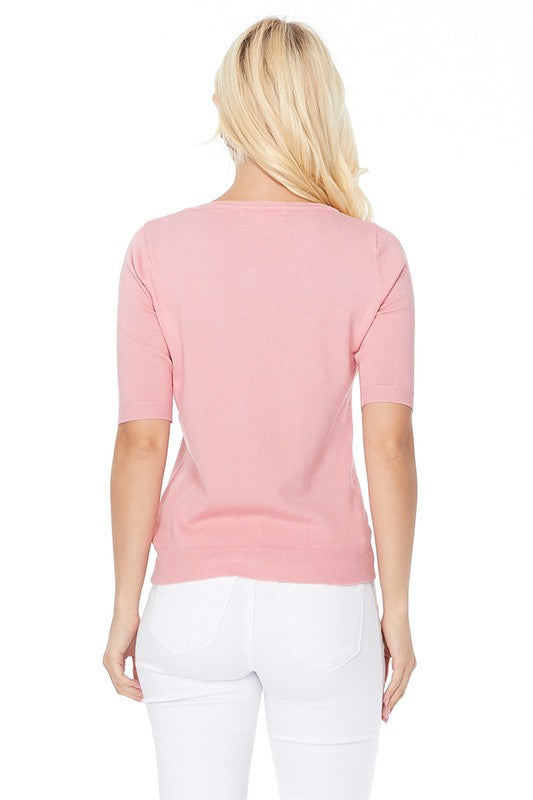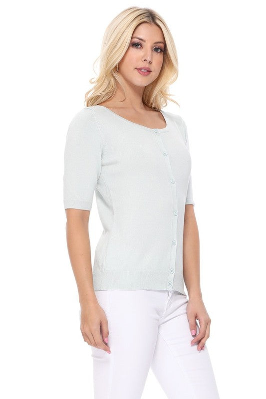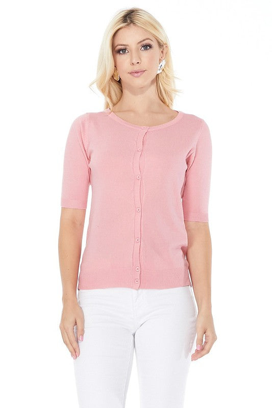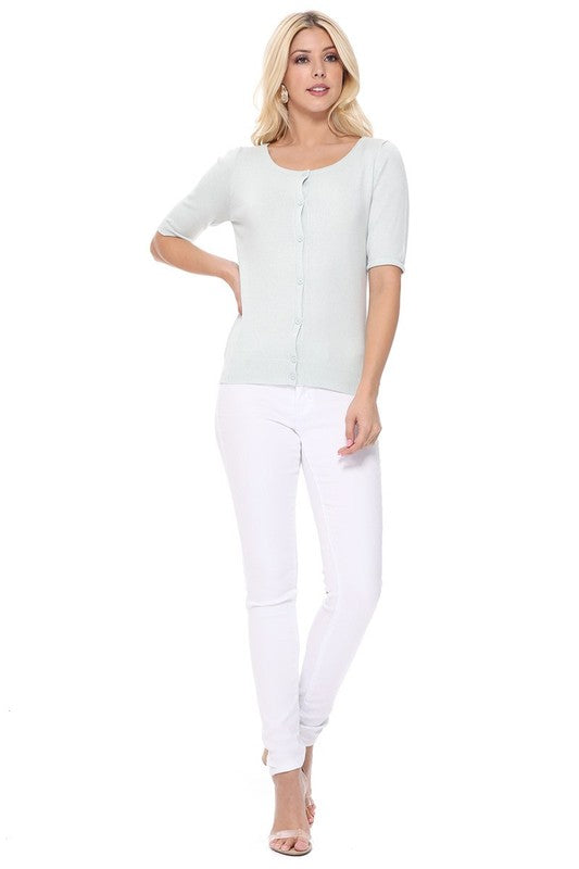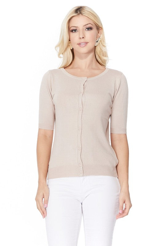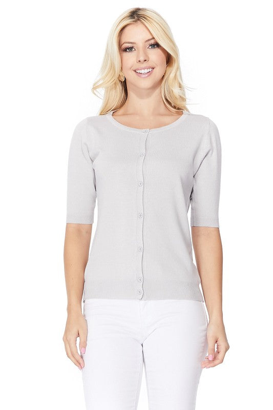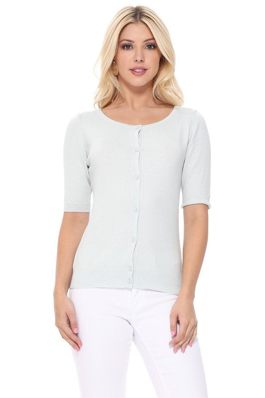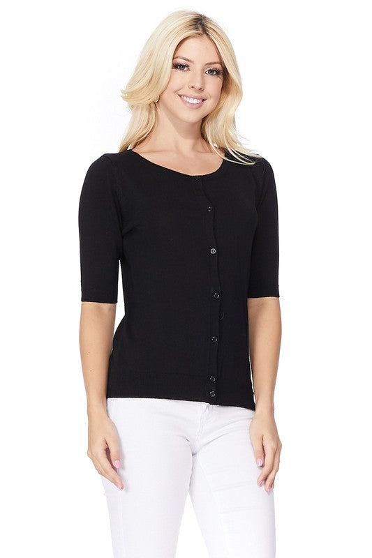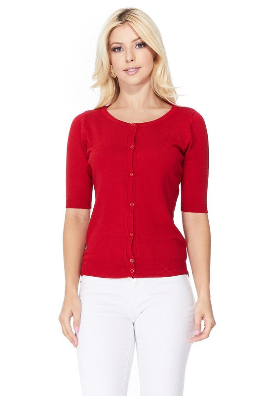 - 22.5\"-23.5\" Length, 1/2 Sleeve, Round Neck, Button Down Knit Cardigan Sweater Top
